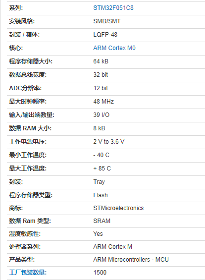 | 产品名称: | STM32F051C8T6 | 产品类别: | IC、二、三极管、晶体管- |